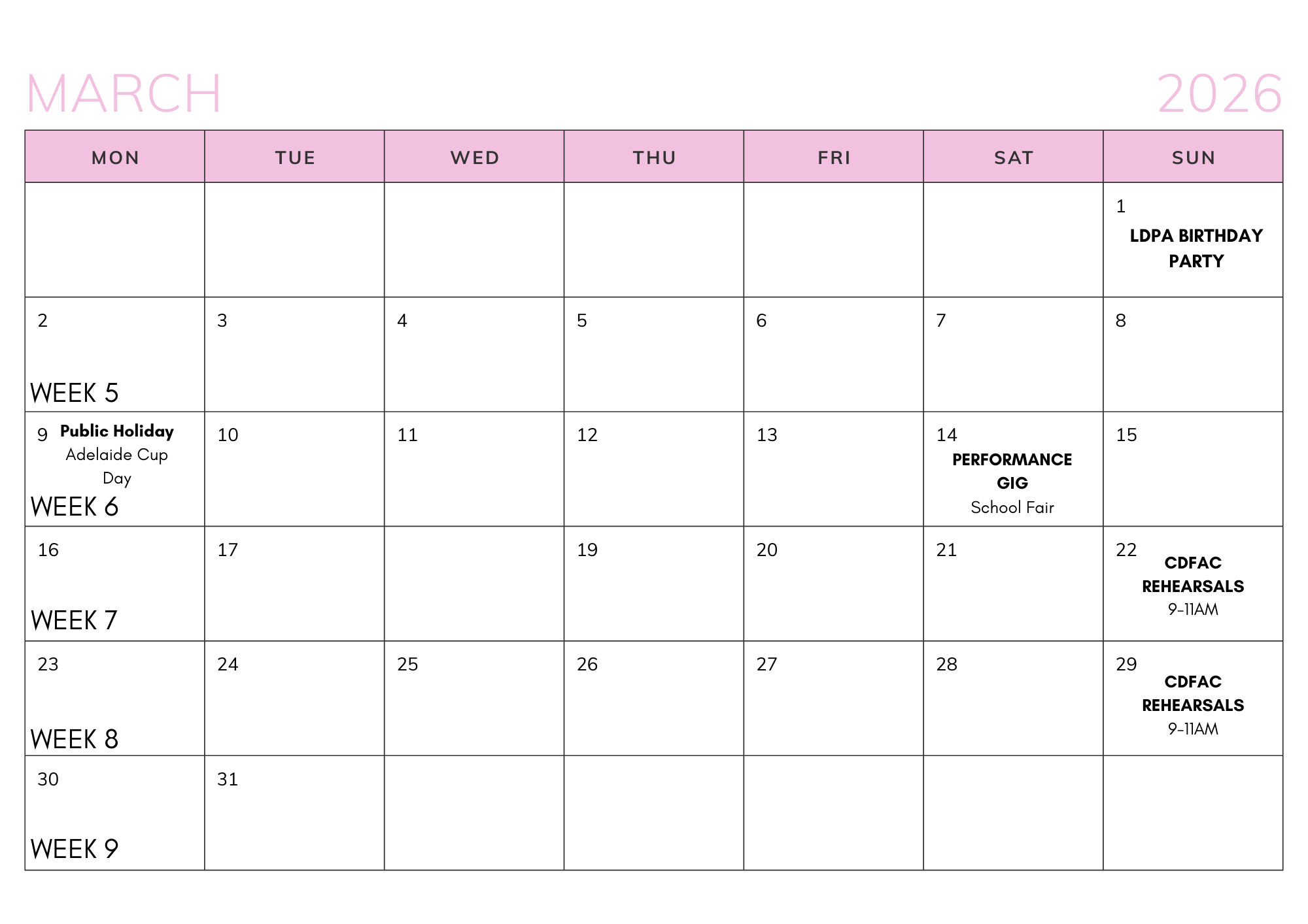 LDPA Calendar